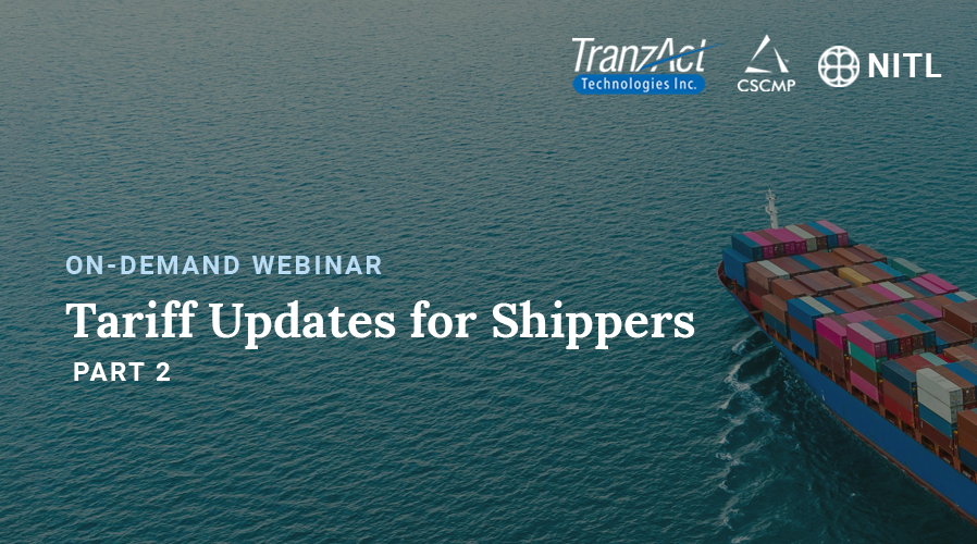 With all the tariff changes underway, this webinar provides insights on this topic and is brought to you by TranzAct, National Industrial Transportation League, CSCMP, and the Global Shippers Forum. This webinar was moderated by Mike Regan, Co-Founder of TranzAct, with panelists: